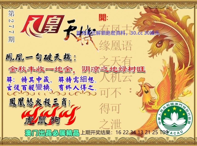 277期:杀三肖【狗龙马】开:虎16准 |