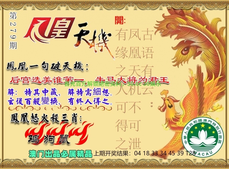 280期:杀三肖【虎鸡羊】开:發00准 |